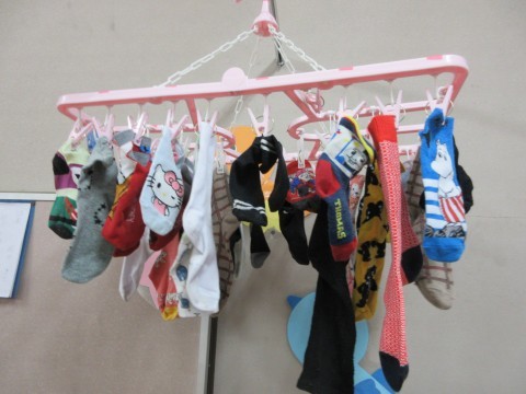 今日は「寄付していただいた靴下を洗濯機で洗ってみよう!」ということで洗濯機の使い方や干し方の学習をしました。(洗濯学習はひまわり③の3時間目にひまわりの学習だった児童で取り組みました)