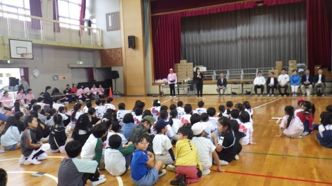 結局雨でしたので,体育館での開催となりました。はじめに連合会長の話,学校長の話,東区長さんの話がありました。その後選手宣誓がありました。子ども会の子どもたちが立派に務めてくれました!また太鼓の演奏も素晴らしかったですね。