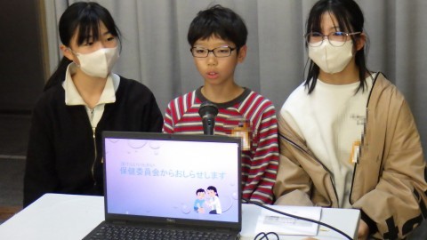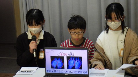令和7年11月10日(月)朝礼(2)保健委員会「手を洗おう」