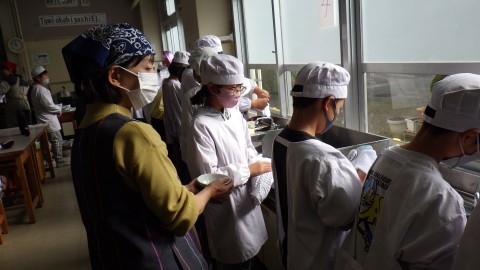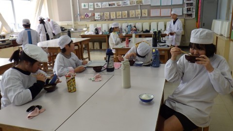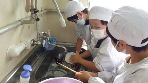 ご飯とみそ汁を作りました。調理実習はその準備も煮沸消毒を行っています。子どもたちは,慎重にだしをとったり,野菜を切ったりしながら,おいしいみそ汁を作ることができました。ご飯も丁度良く炊けて喜んでいました。