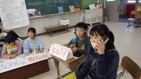 自分の課題に自分でチャレンジしています。どうしてこんなに早く救急車が来るのか,消防車が来るのかなど,消防指令室を再現し,みんなでチャレンジしています。