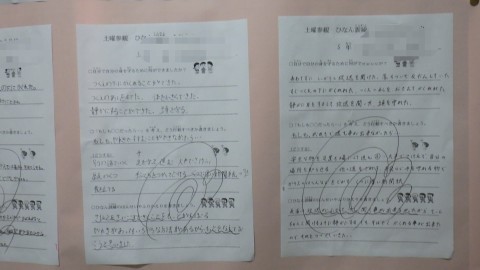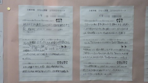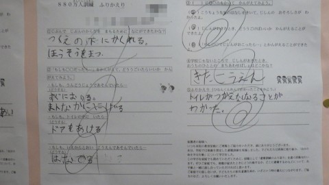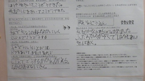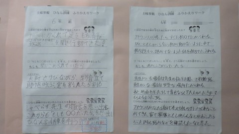 職員室の前には15日の避難訓練の振り返りがはられています。それぞれの「もしも」を見ることができます。