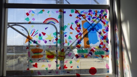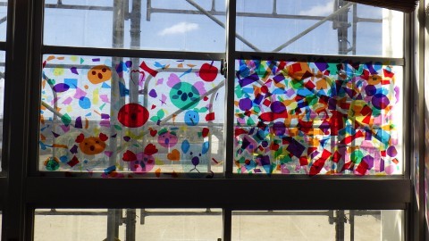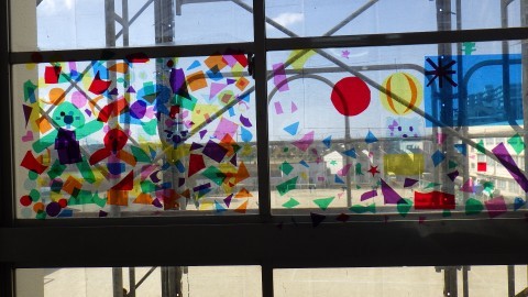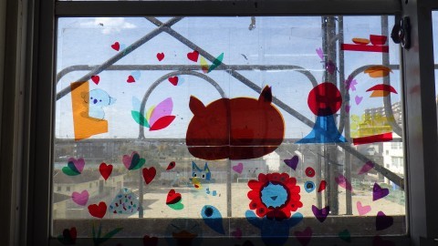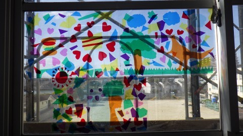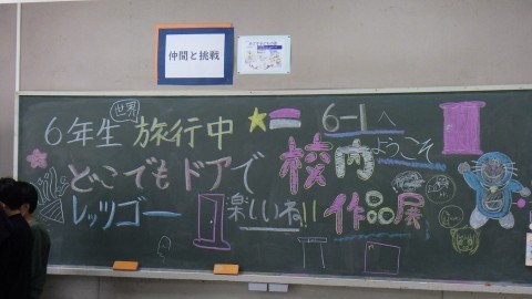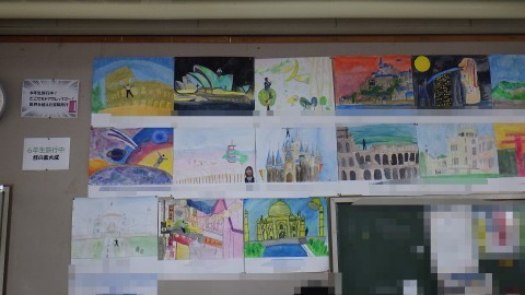 6年生は来てくれるみんなへのメッセージもありました。廊下には,オーストラリアの友だちと作った思い出のステンドグラス!