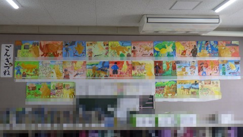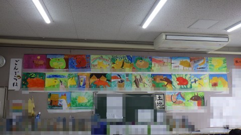 4年生の教室を回ると,先生の作品も飾られていました。5年生の教室の後ろには,宮沢賢治の作品「銀河鉄道の夜」から書かれた絵がはられていました。伝記にもたくさん触れられるといいなと思います。