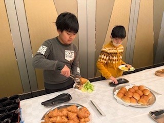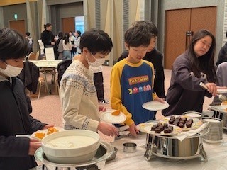 令和7年12月4日(木)修学旅行(14)朝食「パンにしようかなごはんにしようかな」