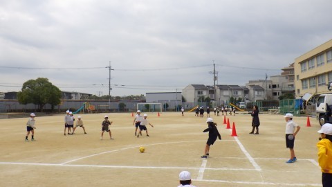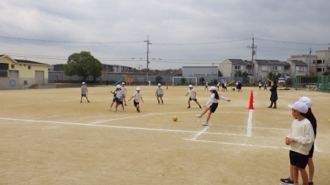ボールをけって,走る!みんなで力を合わせ,楽しく活動する様子がありました。