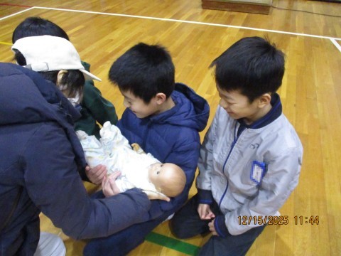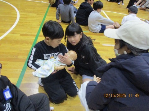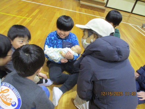 東保健センターから保健師さんが来てくださったり,助産師さんが来てくださったり,命の始まりやどのように大切に大きくなってきたのかお話を聞かせていただきました。本物に近い重さの赤ちゃんを抱っこさせてもらい,子どもたちの表情もやわらかでした。