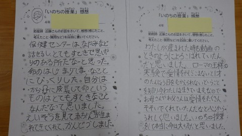 東保健センターには,学校にある保健室があることも知りました。いろんな人が地域の人々の健康を守っていることもわかりました。振り返りもぎっしりと書かれていました。