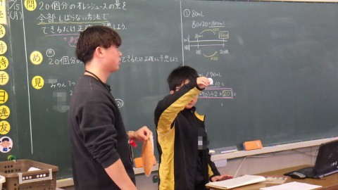 令和7年12月15日(月)5年生算数科「オレンジジュースの平均」(1)