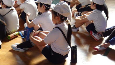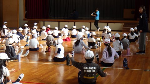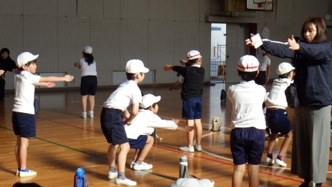 理学療法士の方を招いて,体をどのようにうまく動かしていくか学びました。どのような運動でも,姿勢はとても大切。上手になりたいか尋ねられると全員一斉に手があがっていました。まずは,正しい姿勢から学びました。両手を挙げて手のひらを外に向けて肘と肩が一直線のあたりで止めてみる。すると肩甲骨周りが動かされ,胸骨が開きます。そうして手を下ろしてみると,姿勢よくピント伸びています。両手を伸ばししゃがんでみたり,クモの動きをしてみたり…。体幹を鍛えるための動きもたくさん学びました。小さいころに運動をしておくことはとても大切だとおっしゃっておられました。冬休みも寒さに負けずいっぱい遊んでほしいです。