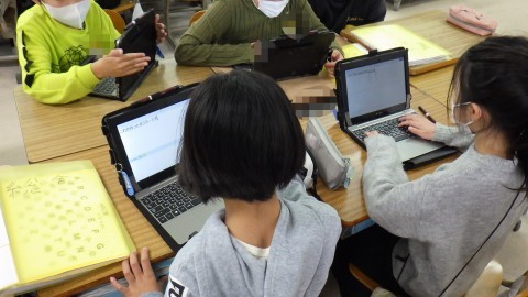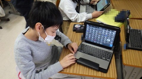 総合的な学習の時間には,自分たちが調べたり考えたりしたことをPCを使ってまとめたり,台本を作ったりなど協力して活動を進めています。PCの使い方も堪能で,福祉器具を並べて見せてくれる子もいました。
