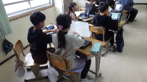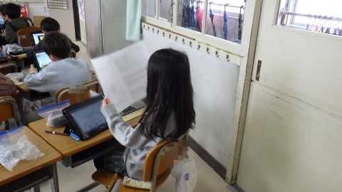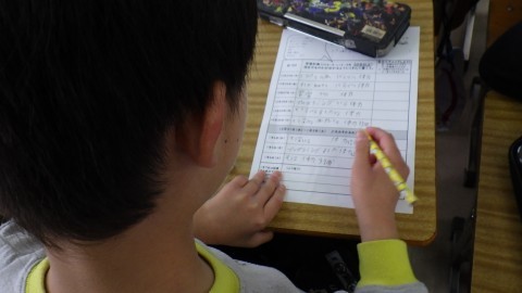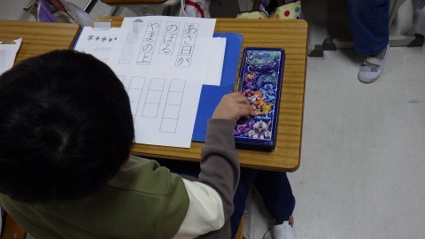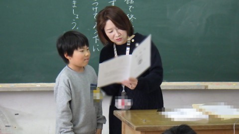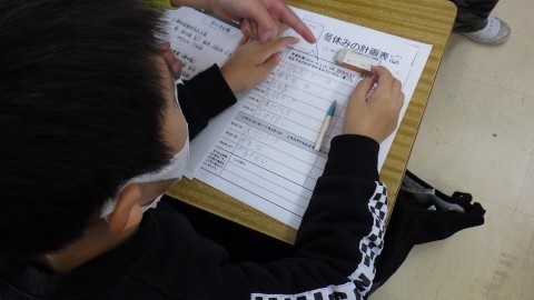 先生から今年の頑張りを伝えてもらっています。待っている子も学習を進めたり,冬休みの計画を立てたりひとりひとり頑張っています。