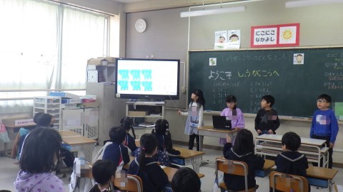 連携園の子どもたちを迎えて,幼小交流を行いました。はじめに堺自然ふれあいの森の館長さんもお越しいただき,校庭の草木の観察をしました。「においのする葉っぱがある!」と未就学児童といっしょに自然に親しみました。次は,小学校がどんなところかわかるように,伝える活動をしました。動画を使って説明したり,やってみてもらう体験をしたりして,分かりやすいよう工夫を凝らしていました。