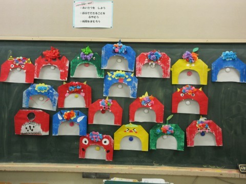 2月のカレンダーのテーマは「節分」でした。子どもたちは2月と言えば・・・の質問に「豆まき~」「鬼」「節分」など答えていました。子どもたちにとって,節分は2月の行事としてしっかりと定着しているんだなと思いました。個性あふれる鬼のお面が出来上がりました!