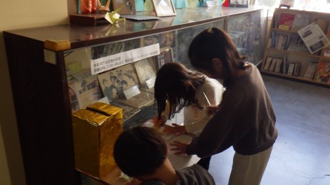 月曜日の朝礼で「ふわふわの木」の取組から,自分がかけてもらった言葉のお礼を書こうという企画があったので,そのお礼を書いています。誰に書いているのかな?