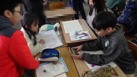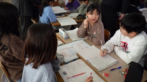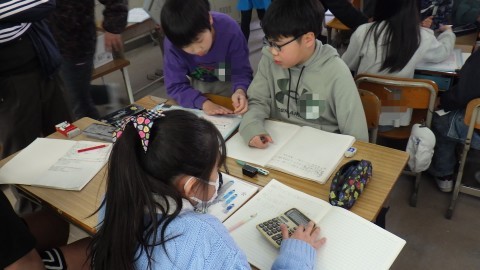 平均の学習で,歩測で廊下の長さを測る学習をしました。なぜ10歩で1歩を出すのか,なぜ廊下を4回も測るのかなど考えながら,1歩の歩幅を測り,廊下端から端まで何歩ぶんか数えかけ算して求めました。誤差はあって普通。誤差を踏まえ,どうすると正確な値が出るだろうと子どもなりにさまざまに考えていました。子どもたちに身につけさせたい力をどうすると確実に楽しく身につけられるか教職員の協議も活発に行われました。