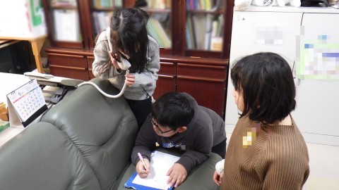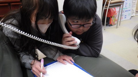 北公園の清掃活動を決めた子どもたち。電話でその許可を取っています。受け答えも丁寧に待ち合わせ時間と場所も決めました。
