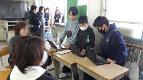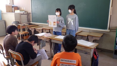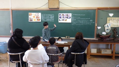 相手を見ながら,場の状況に合わせて発表していました。地域コーディネーターの方に片付けていただいてきれいになった国際資料室も活用して発表しました。