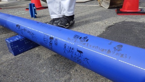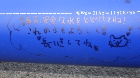 日常的にお世話になる水道。こうして守ってくださっている人々のことも想像し,この先100年使い続けるこの水道管に思いを書きました。感謝の気持ちを書く子どもたちがいっぱいいました。