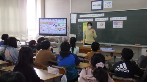 野田小学校の栄養教諭さんにお越しいただき,偏りのない食事について学習しました。アプリを利用して自分の食べたものも記録できます。