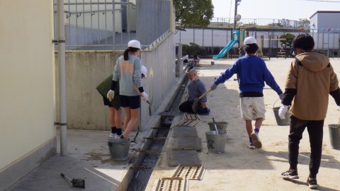 令和8年3月5日(木)6年生奉仕作業:側溝の掃除