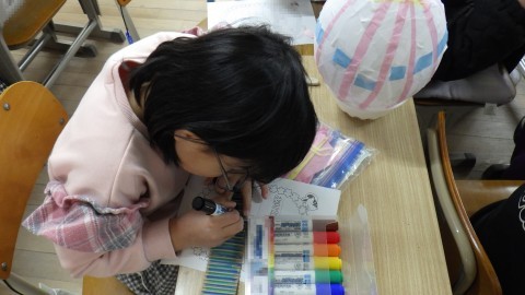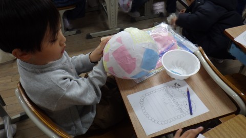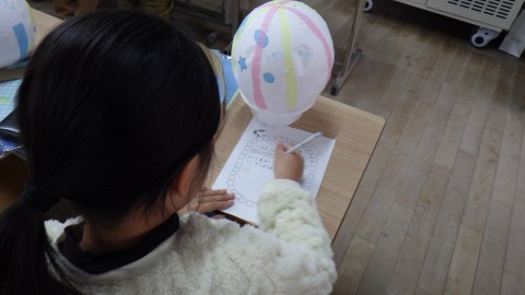 隣のクラスはまだ制作中です。でも,あたたかなメッセージを書いている姿も発見!おうちの人に楽しんでもらえると嬉しいね!