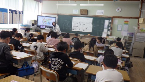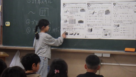 この展開図はどの立体になるのかを考えています。学んだ言葉を駆使しての説明。すばらしい。