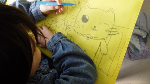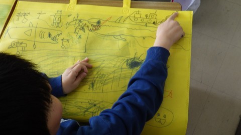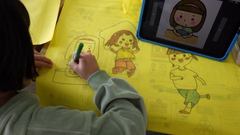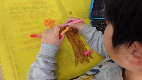 今の気持ちを絵に表す子どもたち。このイラストも3年生のころの思い出として残ります。好きなもの,興味があること。さまざま!