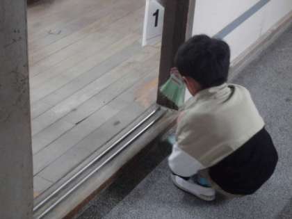 なかなかお客様用のスリッパを整えてくれる子どもはいませんでしたが、中の砂もきれいに掃いて、スリッパもあるかどうか見てくれていました。機転がきいて掃除ができるのは、さすが6年生だと思います。1年生の教室でも、6年生は掃除を教えてくれています。1年生の子もそれにこたえて精一杯掃除をしてくれていてうれしいです。