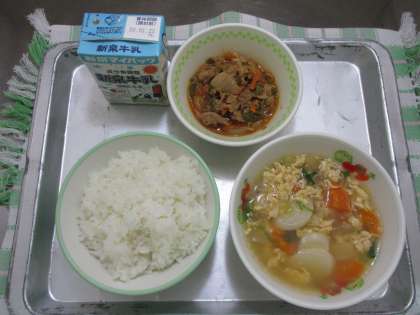 6月6日の給食 は ごはん 牛乳 トック 豚肉のプルコギです。