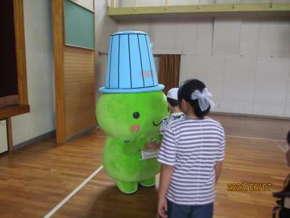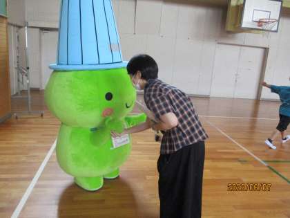 むーやんとの記念写真や握手に子どもたちは大喜びでした。