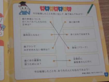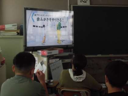 歯磨き大会がありました。歯について学んだり、歯ブラシやフロスを使った実習もしました。歯磨きがこんなに大切だなんて知らなかったと磨き続けている子、ねばねばが歯垢になることを初めて知った子、さまざまでした。歯ブラシやフロスを使ってこれからも歯磨きしたいと決意している子がたくさんいました。