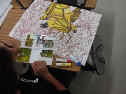 蝶を描くだけでも、こんなにたくさんの色を作ってぬれるとは、すごいなあと感心します。