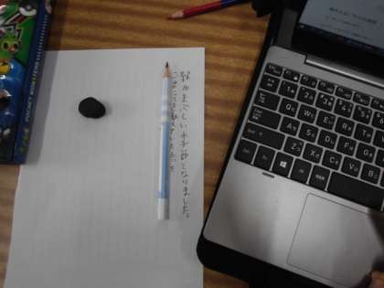 先日出前授業に来てくださった環境事業部ムーヤンさんにお礼の文章を書いていました。時候の挨拶を考えて本格的です!