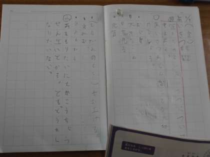 挨拶について学習しました。名前をつけてあいさつしたり、心で相手のことを思ってあいさつしたり、態度と心を大切に伝えることを学びました。見守りたいのひとにもあいさつしたいと書いているノートもありました。うれしいです!