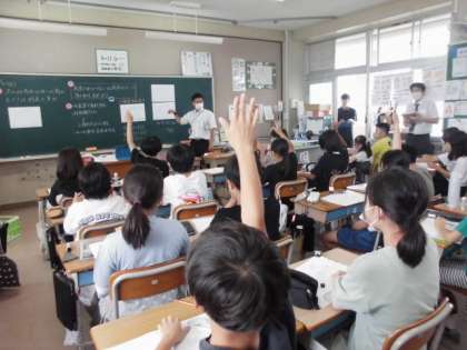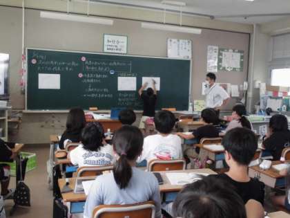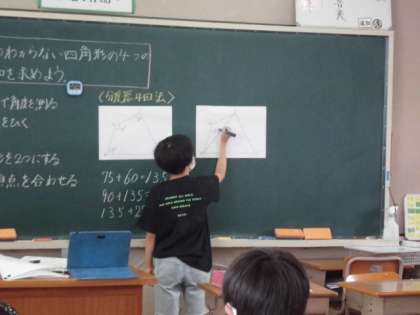 四角形の内角の和を求めました。どのように求められるか複数の考えが出されました。
