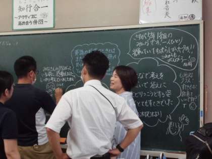 研究協議が終わると、学ばせてくれた子どもたちにメッセージをつづります。5年生の子どもたちに感謝です。