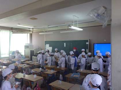 1つ1つ給食のルールやマナーを担任の先生と確認しています。