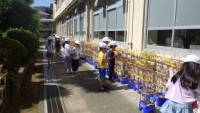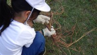 たねがどこにあるのか一生懸命探していました。これからアサガオのつるで6年生とリー...