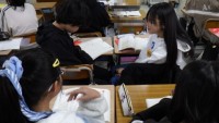 登美丘西,東,南小学校の6年生が登美丘中学校に集まりました。授業を体験させてもら...