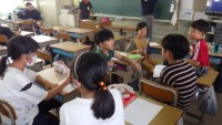 20分休憩には、たくさんの子どもたちが本の借り換えにきていました。自分の学年の色...