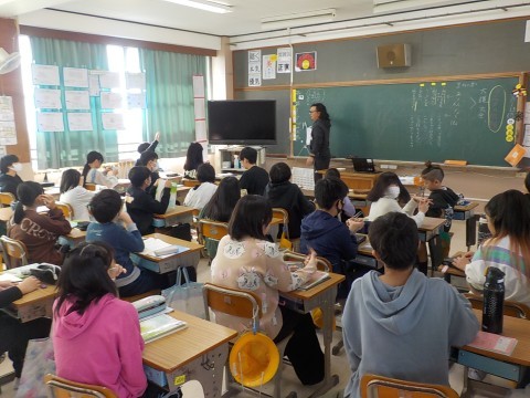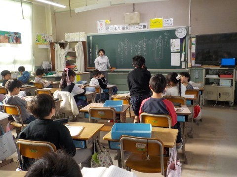 国語は食べ物のひみつを教えますという学習です。すがたをかえる大豆で学んだ文章の書き方を意識して文章を書いていきます。担任の先生の研究授業も兼ねていたので,色々な学校の先生も参観して頂きました。