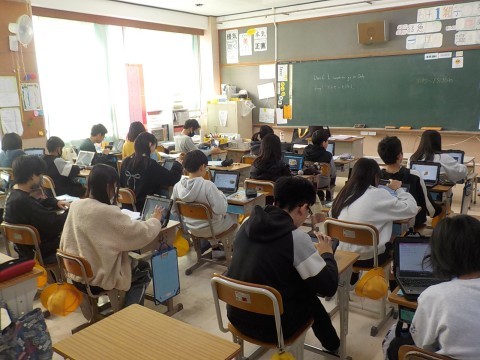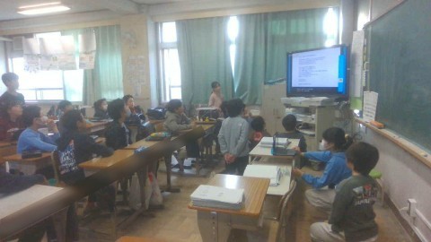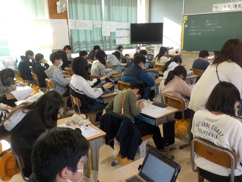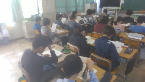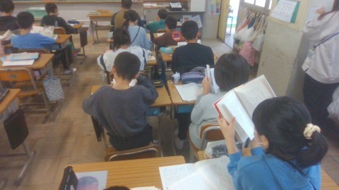 国語は「3年とうげ」という教材の読み取りをしていました。文章の言葉に着目しながら読み進めています。他のクラスでは「すがたをかえる大豆」で学んだことをいかしながら,「すがたをかえる○○」として調べたことをまとめていました。お互いの文章を読み合いながら進めていました。