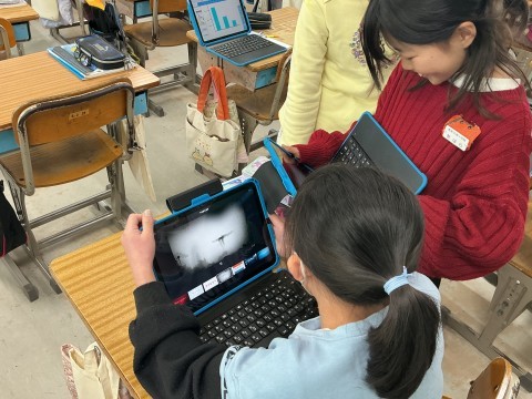 クラブ活動でiMovieを使って自己紹介動画を作ろうという活動をしました。教室に戻った児童がクラスの子たちと作ったり、説明したりする様子がみられました。子どもたちのしりたい、やりたいはすごいです。