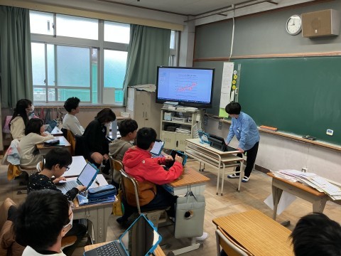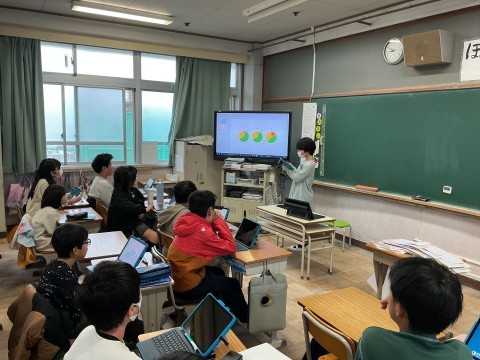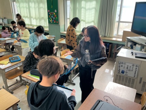 外国語の授業終わりに聞きたいことがあったようでNSの先生に話しかけていました。英語が分からないということで、翻訳機能を使いながら質問していました。