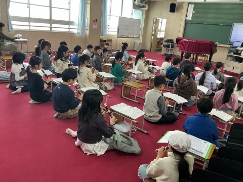 音楽はリコーダーをしていました。練習し曲に合わせて吹いたりしています。