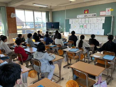 目標の話や5年生の総合的な学習の時間の発表、6年生からの感謝の言葉などがありました。
