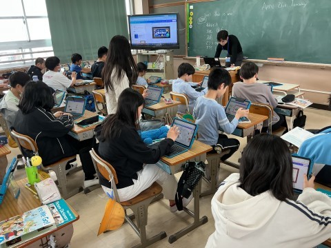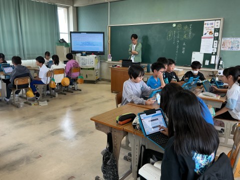 図画工作で「マーブリング」という技法で紙を色づけていました。算数で力試しプリントをしているクラスや,パソコンのタイピングの練習をしているクラスもありました。