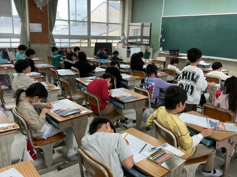 図工の学習は季節を感じながら、色で表現したり、色々な表現技法の練習をしたりしていました。