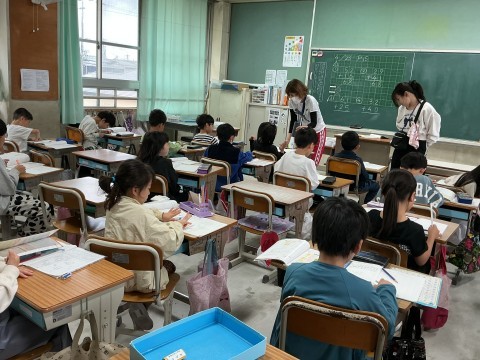 国語は「帰り道」を読んで、登場人物の関係性について対比させながら考えていました。それぞれの登場人物の視点や価値観など文章から読み取って、考えています。5時間目には,6年全員でスポーツテストのシャトルランをしていました。